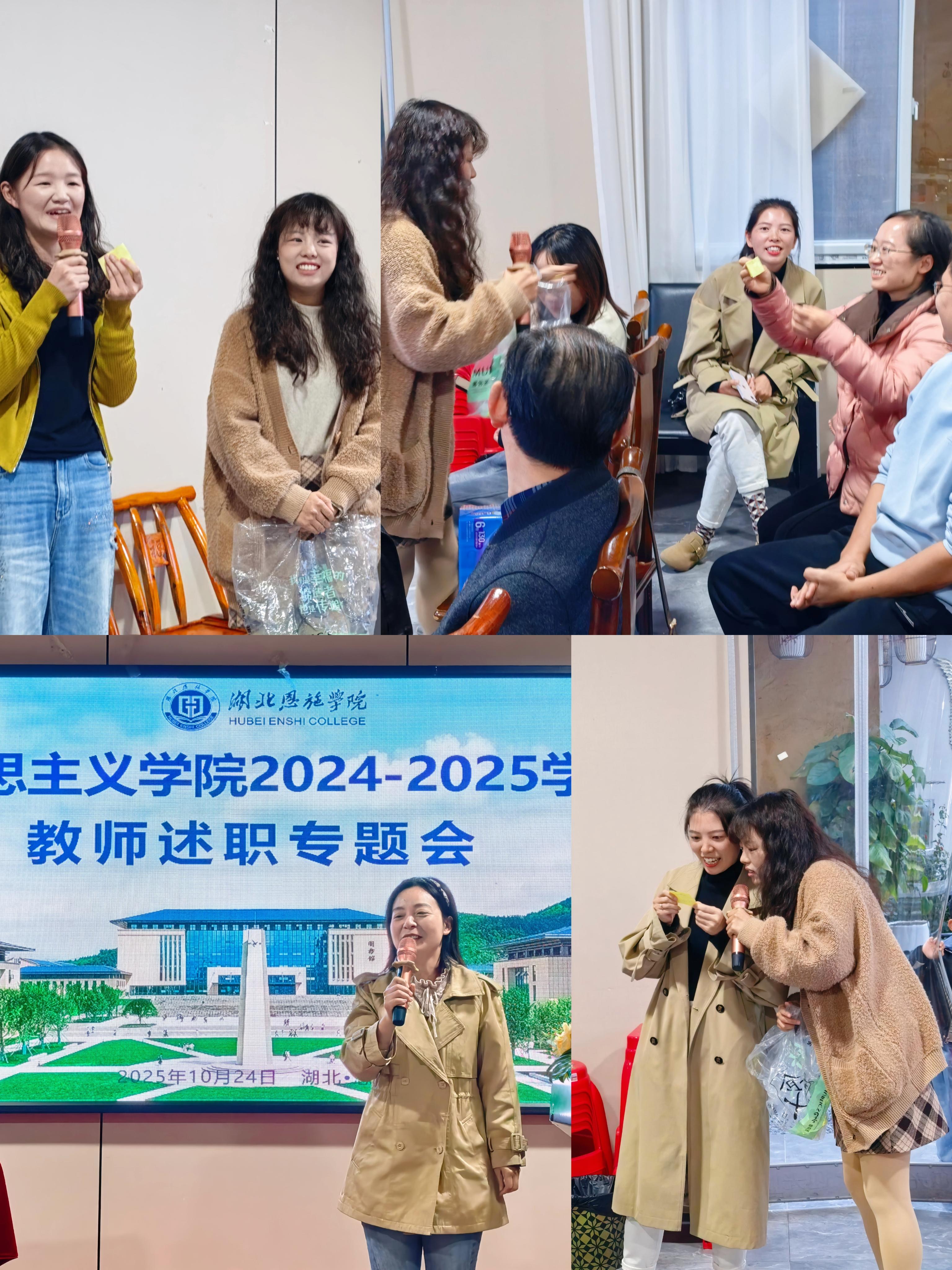 绩效述职作为会议核心环节,全体专职教师以 “数据说话、成果导向”为原则,对照《湖北恩施学院绩效评估管理办法》与个人年度目标任务书,从师德师风建设、学科发展推进、教学模式创新、科研成果产出、教学创作实践等维度,系统汇报年度履职情况。汇报聚焦教育教学改革突破点、一流课程建设阶段性成果、科研创作思路,全方位展现了马克思主义学院教师的专业能力与责任担当,为后续工作开展明确方向。