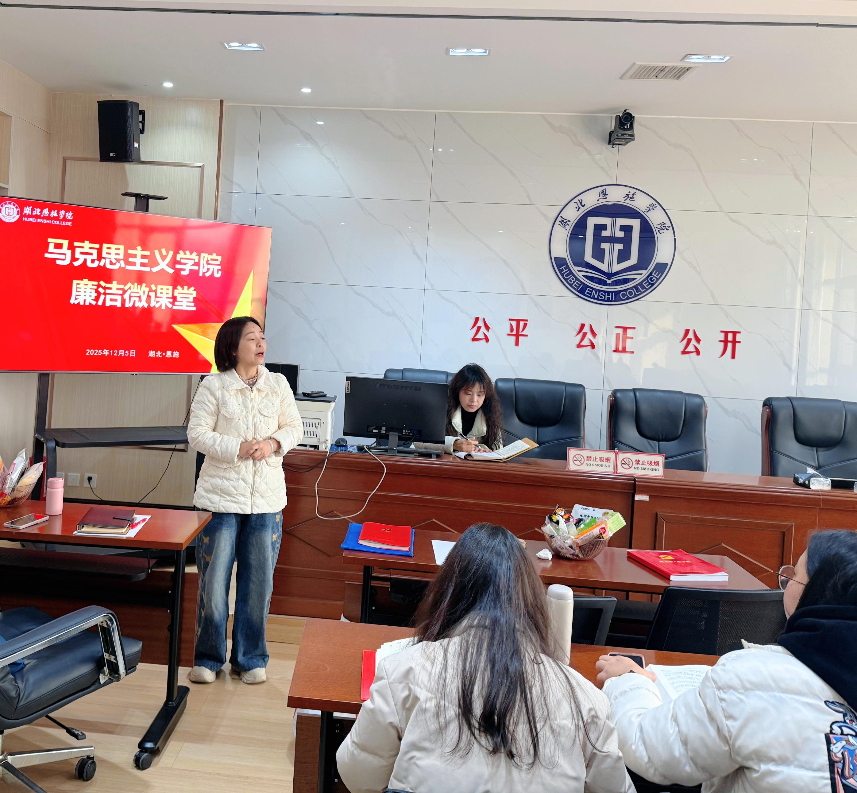 2025年12月5日,马克思主义学院廉洁微课堂开讲,全体教职工全员参会。学院办公室主任王信子主持本次活动,围绕执纪监督通报、典型案例剖析及廉洁师德建设展开学习,旨在强化教职工廉洁自律意识,夯实师德师风根基。