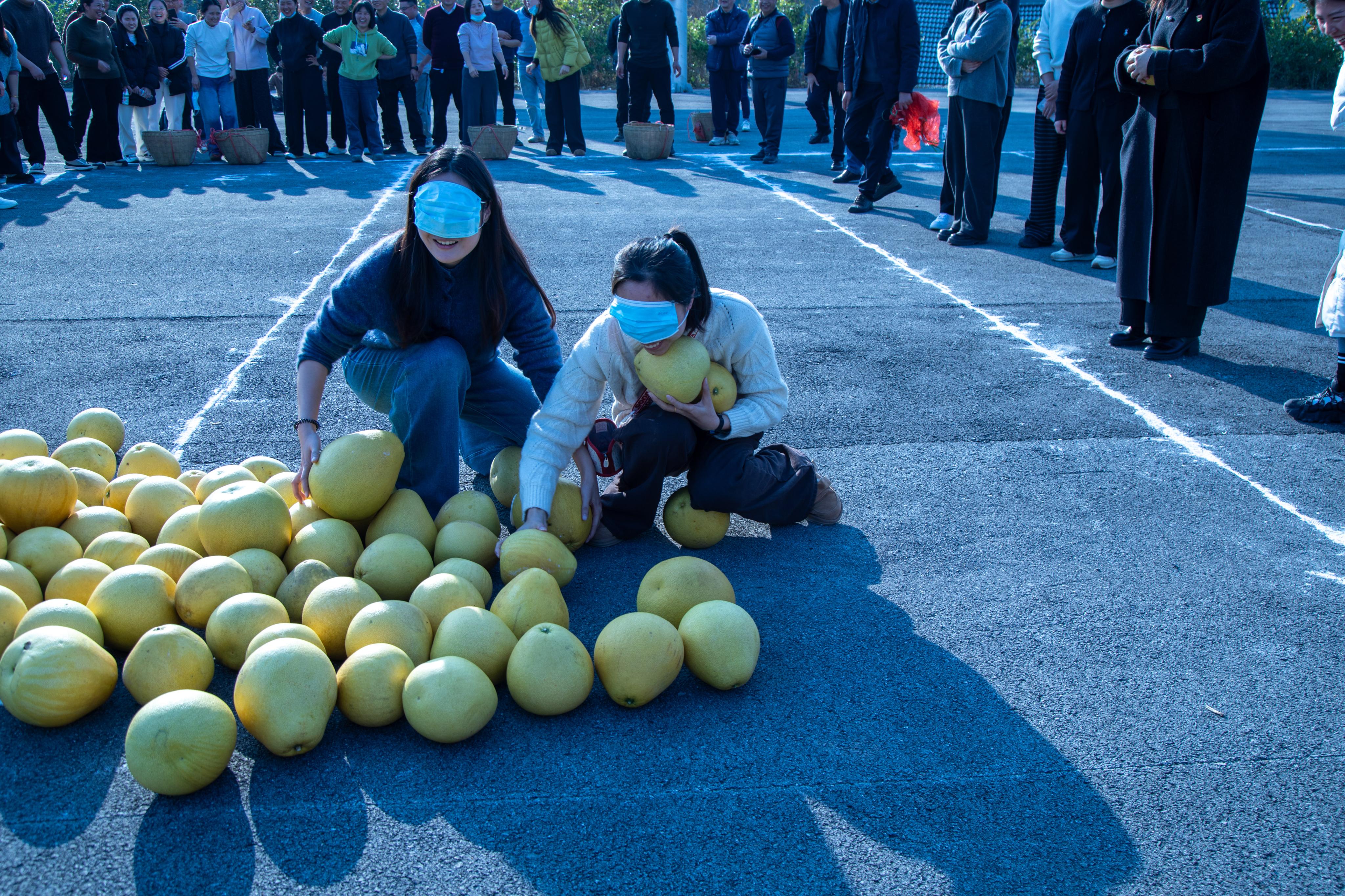 活动尾声,校村党员共同参与趣味运动会,“7分钟接力蒙眼抱柚子”项目精彩纷呈。双方队员默契配合、奋勇争先,学院党员团队凭借高效协作赢得比赛,现场氛围热烈融洽,既增进了校村情谊,更展现了两个党组织团结奋进的良好风貌。为践行助农初心、助力乡村振兴,老师们纷纷购买当地农户的特色水果作为纪念,以实际行动拓宽农产品销路、助力农民增收,用自觉践行乡村振兴使命。