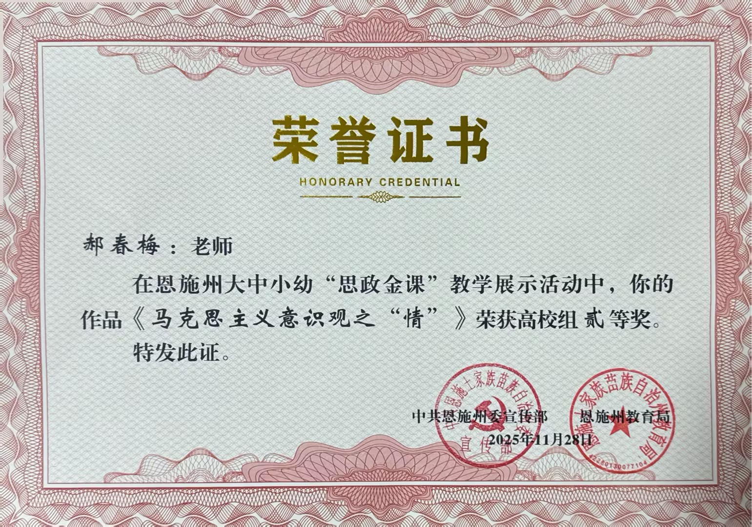 此次获奖既展现了湖北恩施学院思政课教师的教学创新能力与育人水平,也体现了学校在思政课程建设方面的扎实成效。学校将以此次活动为契机,持续深化思政课教学改革,进一步提升思政育人质量,为推进区域大中小幼思政教育一体化建设贡献更多力量。