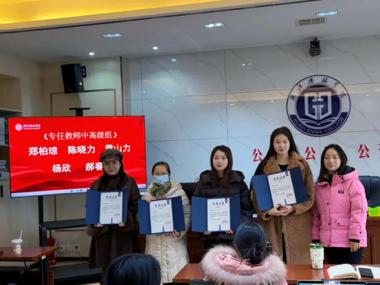 表彰环节成为大会亮点。经严格评选产生12名获奖教师,其中郑柏琼、陈晓力等5人获评专任教师(中高职称组)奖项,肖婷、卢柳叶等3人获专任教师(初级及无职称组)表彰,芮华勤、杨中刚等3人入选“双肩挑”教师组,外聘教师李相颜获评外聘教师组奖项,随后,办公室主任王信子、第二教研室副主任丁玲、第一教研室主任董艳平、学科带头人杨中刚分别为各获奖组别教师颁奖,见证荣耀时刻。